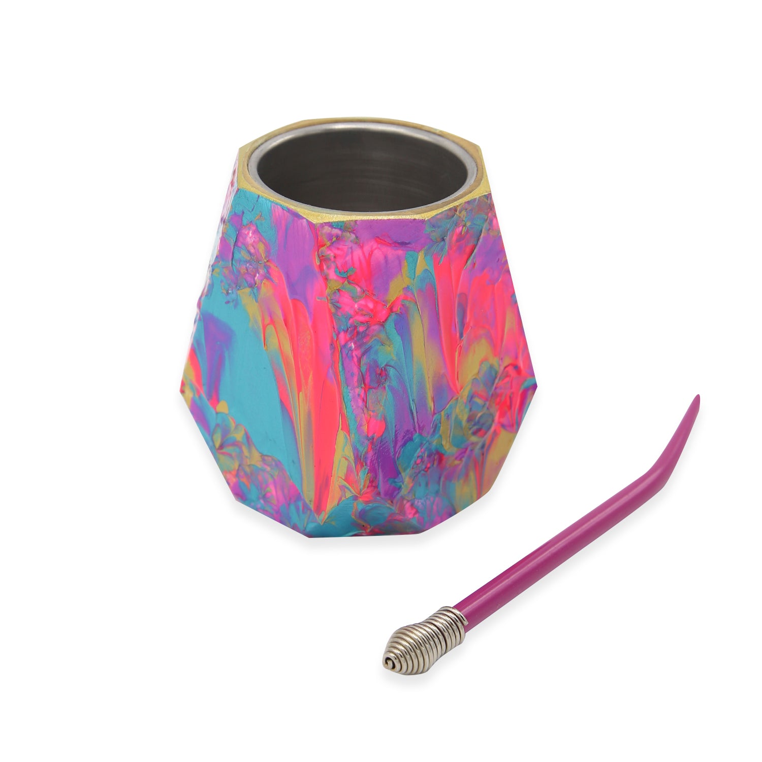 Includes a complimentary aluminum bombilla (straw) a random color, with a removable stainless steel spring filter.