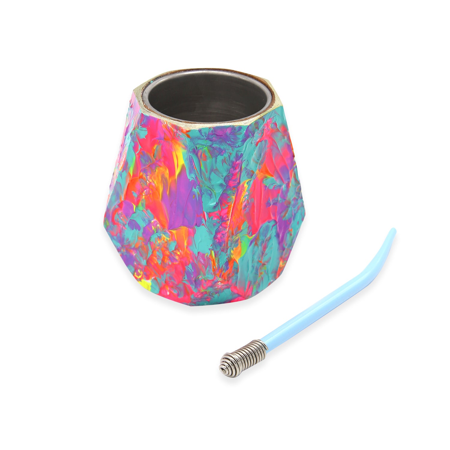 Includes a complimentary aluminum bombilla (straw) a random color, with a removable stainless steel spring filter.