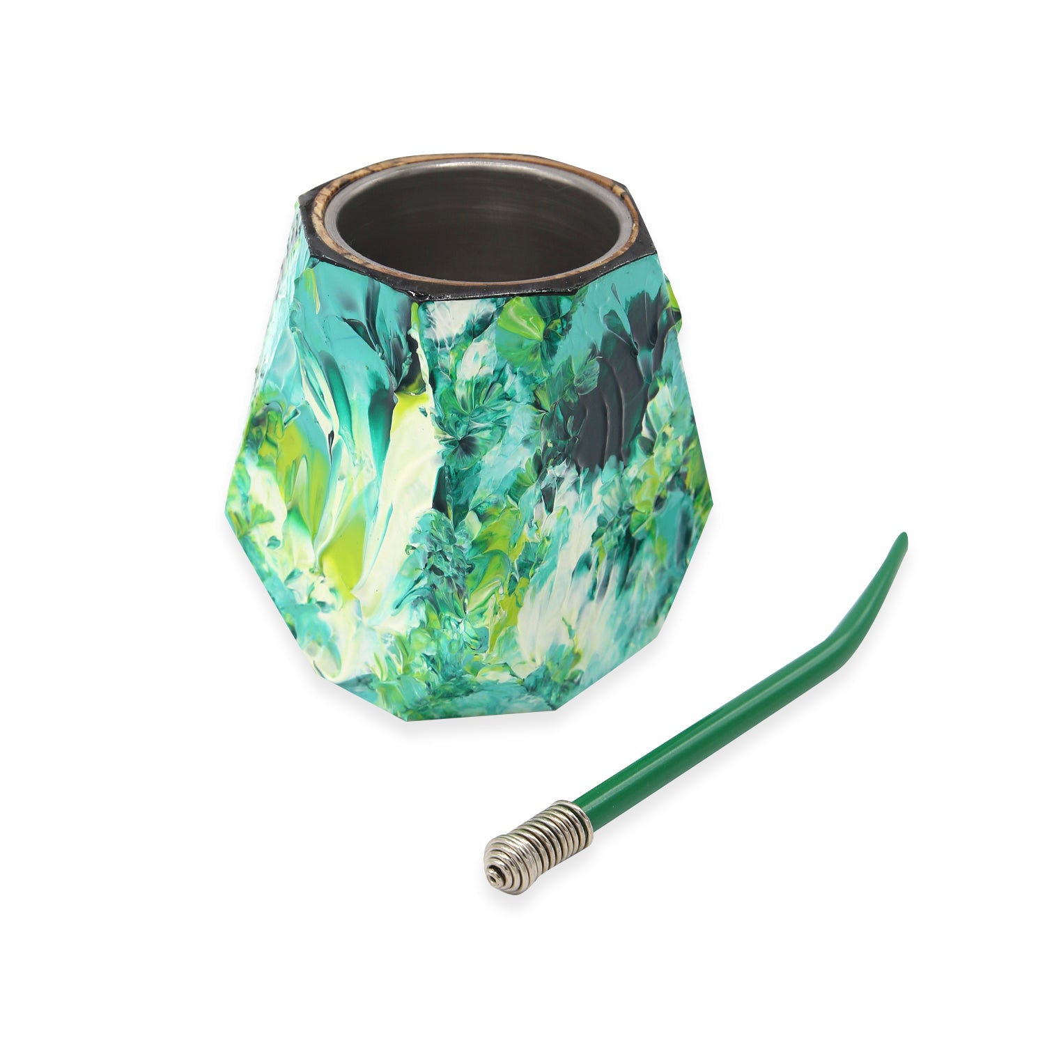 Includes a complimentary aluminum bombilla (straw) a random color, with a removable stainless steel spring filter.